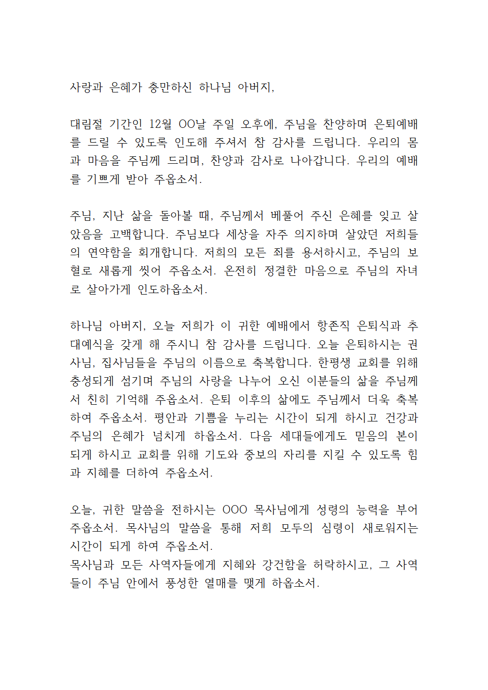 이번 글에서는 권사 취임 기도문을 안내해 드리겠습니다.
