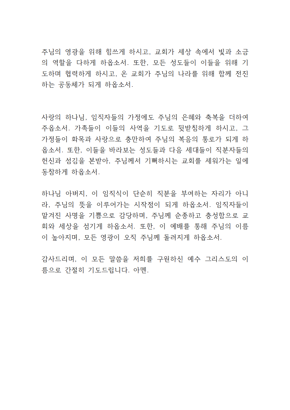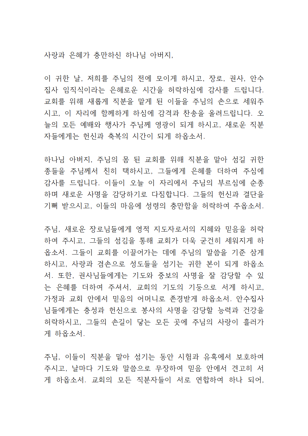 권사 임직 시 직접 사용하실 수 있도록 기도문을 첨부파일(한글문서, PDF 문서)로도 올려드릴 테니 상황에 맞게 활용해 보세요.~!!