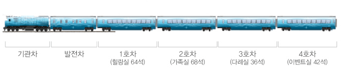 남도 해양열차 경전선은 객실칸 4호에 총 210개의 좌석으로 구성되어 있습니다.