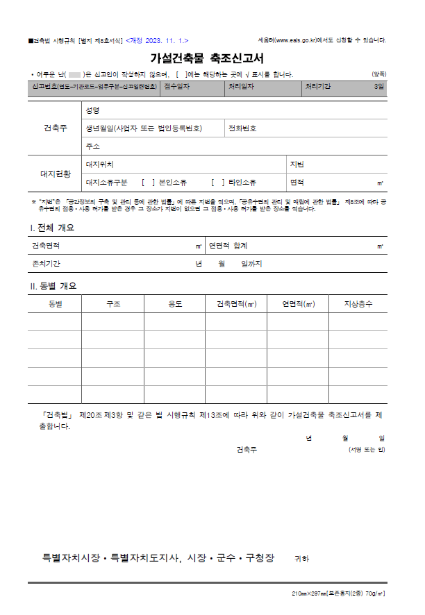 ※ 가설건축물 축조신고 방법이 궁금하시면 다음 글을 확인하세요.