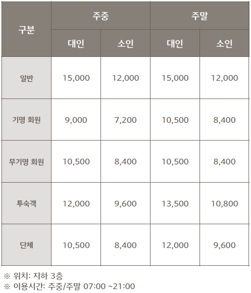 ○ 스위트 객실 요금 (무기명 회원 기준, 2024.07.19 ~ 2025.07.18)