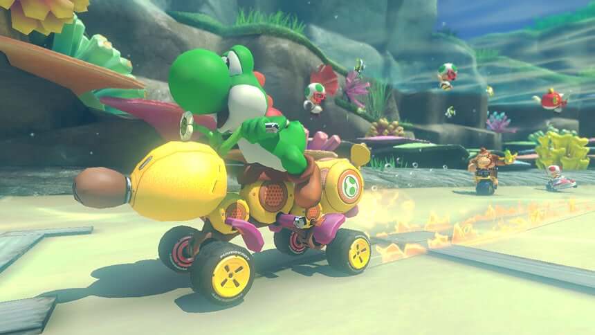 - 모든 DLC 포함: Wii U 버전의 마리오 카트 8에서 제공되던 모든 DLC 트랙과 캐릭터를 기본 제공.