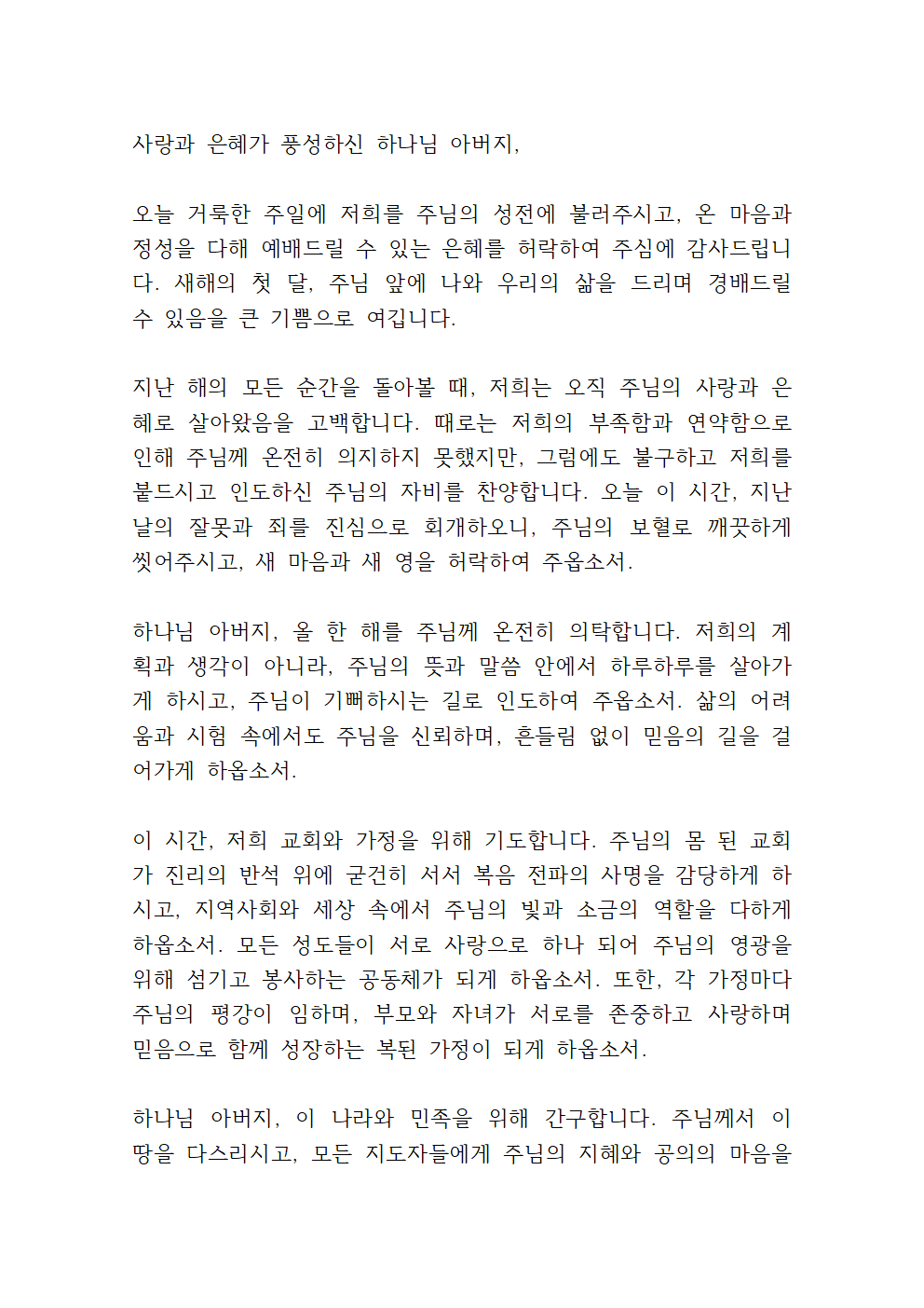 이번 글에서는 1월 주일낮예배 시 기도하는 대표 기도문을 안내해 드리겠습니다.