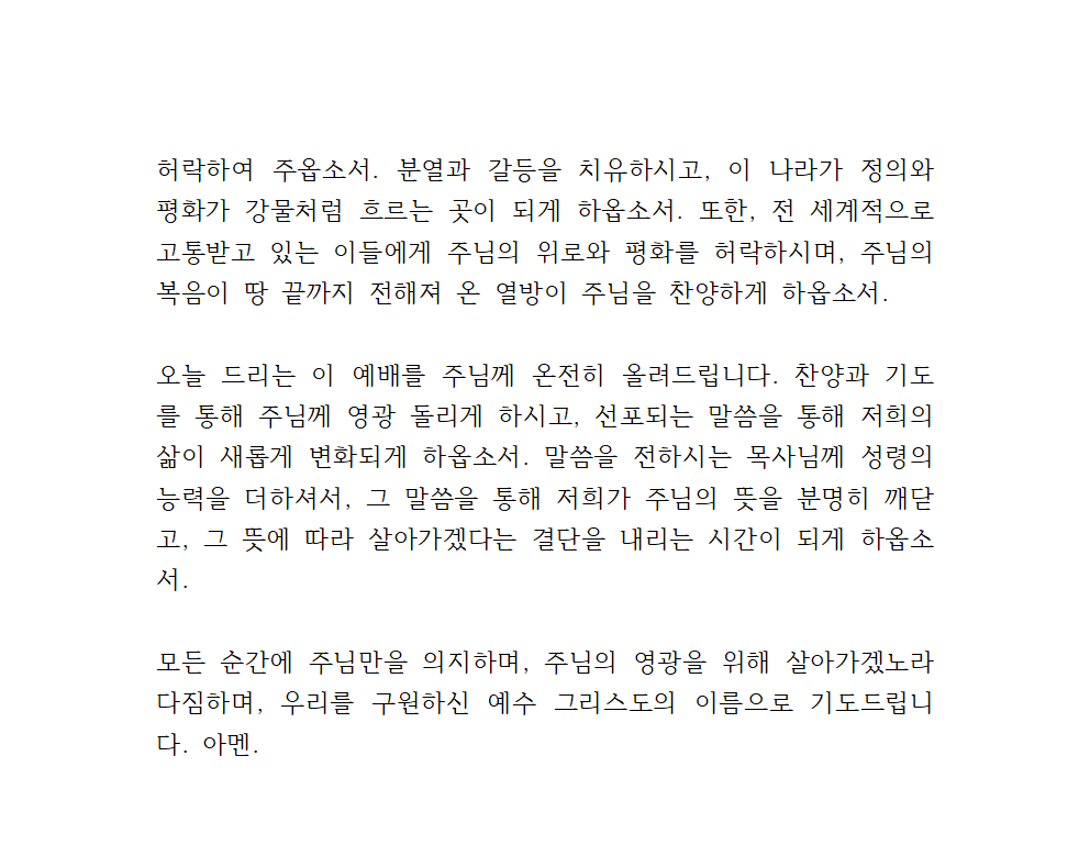 ※ 다음은 최근 한국 정치 안정을 위한 기도문입니다. 필요하실 때 함께 사용해 보세요.