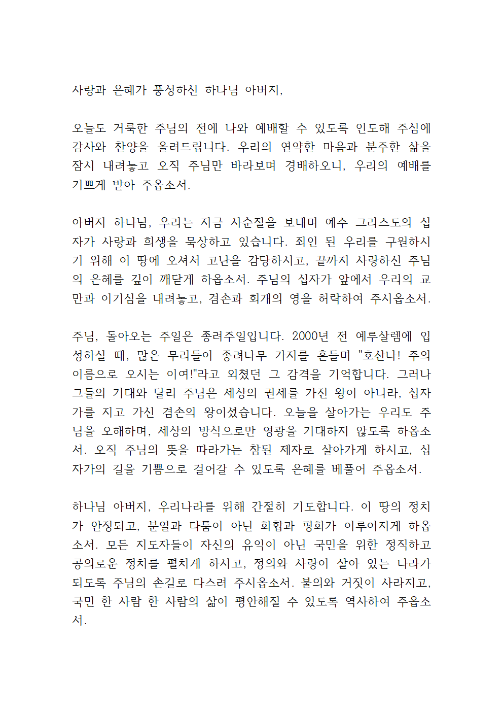 다른 기도문 더 보기 (수요예배 2, 종려주일, 고난주간)