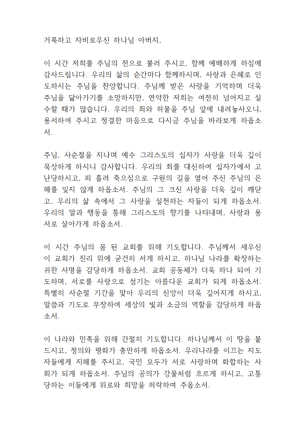 2025년 4월 둘째 주 수요예배 대표기도문 파일
