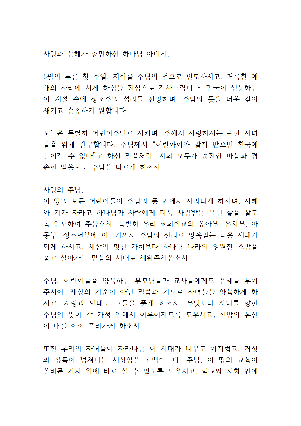 어린이 주일 기도문