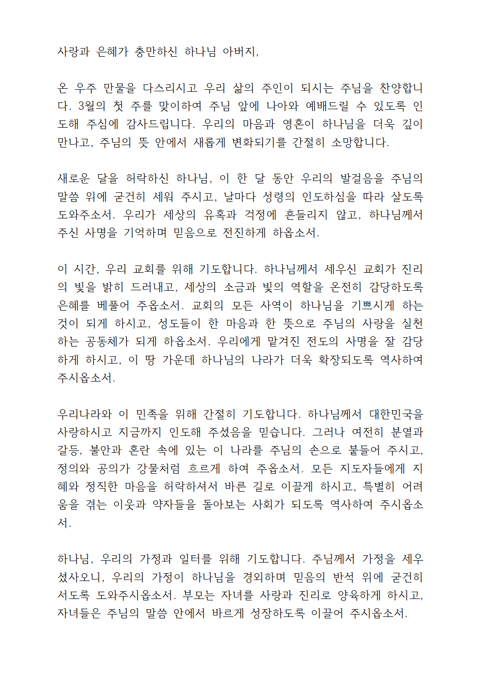 이번 글에서는 3월 첫째 주 금요기도회 기도문을 안내해 드리겠습니다.
